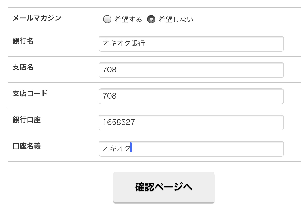 振込先口座情報を記入し換金申請へ進みます。