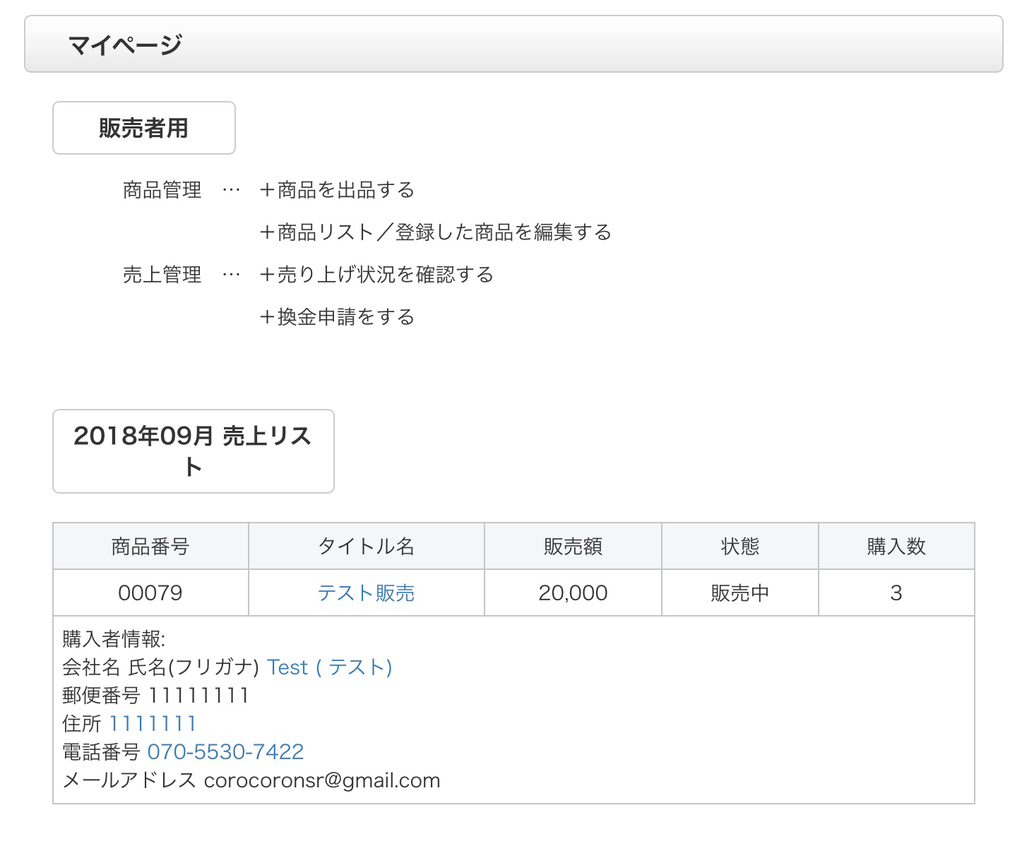 商品が購入されたら売上情報から購入者情報を確認して連絡します。
